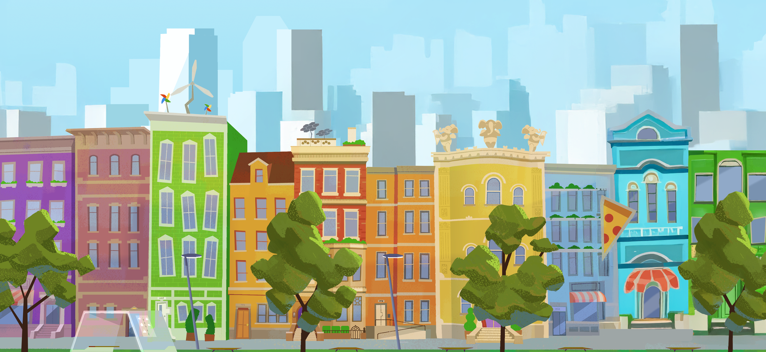Colorful animated characters surrounding a large green play button with a white triangle, and the text 'Run the Code!' at the bottom.